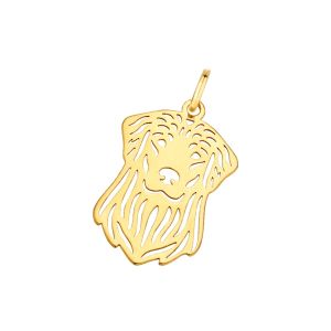 Zawieszka ze srebra próby 925 pozłacanego 24-karatowym złotem w kształcie golden retrievera. Wielkość zawieszki: 20 mm Zawieszka posiada dołączone kółeczko do zawieszenia na łańcuszku. Wewnętrzna średnica kółeczka: 3 mm Przedmiotem sprzedaży jest sama zawieszka (bez łańcuszka). |