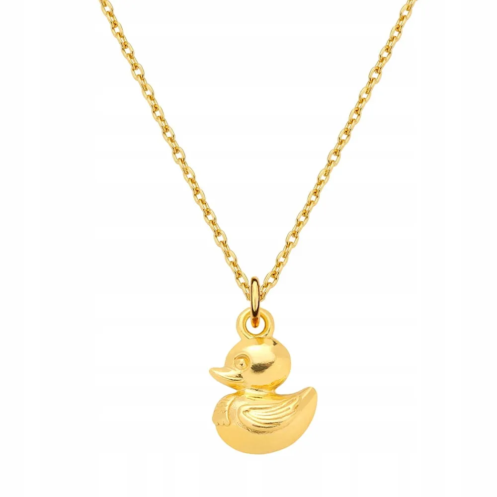 Zawieszka ze srebra próby 925 pozłacanego 24-karatowym złotem w kształcie kaczuszki. Posiada dołączone kółeczko do zawieszenia na łańcuszku. Wielkość zawieszki: 14 mm. Wewnętrzna średnica kółeczka: 3 mm Przedmiotem sprzedaży jest sama zawieszka (bez łańcuszka). |