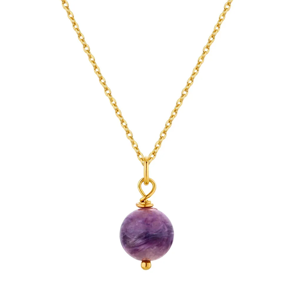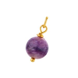 Zawieszka wykonana z naturalnego kamienia półszlachetnego i srebra próby 925 pozłacanego 24-karatowym złotem. Posiada dołączone kółeczko do zawieszenia na łańcuszku. Wewnętrzna średnica kółeczka: 3 mm Kamień: ametyst naturalny ~10 mm Wielkość zawieszki: ~15 mm Przedmiotem sprzedaży jest sama zawieszka (bez łańcuszka). |