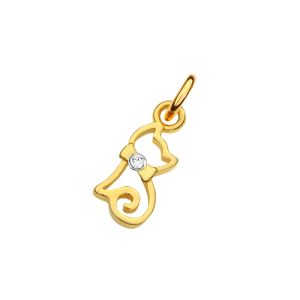 Zawieszka ze srebra próby 925 pozłacanego 24-karatowym złotem w kształcie kotka z kryształkiem Swarovski. Posiada dołączone kółeczko do zawieszenia na łańcuszku. Wielkość samej zawieszki: 12,5 mm. Wewnętrzna średnica kółeczka: 3 mm Przedmiotem sprzedaży jest sama zawieszka (bez łańcuszka). |