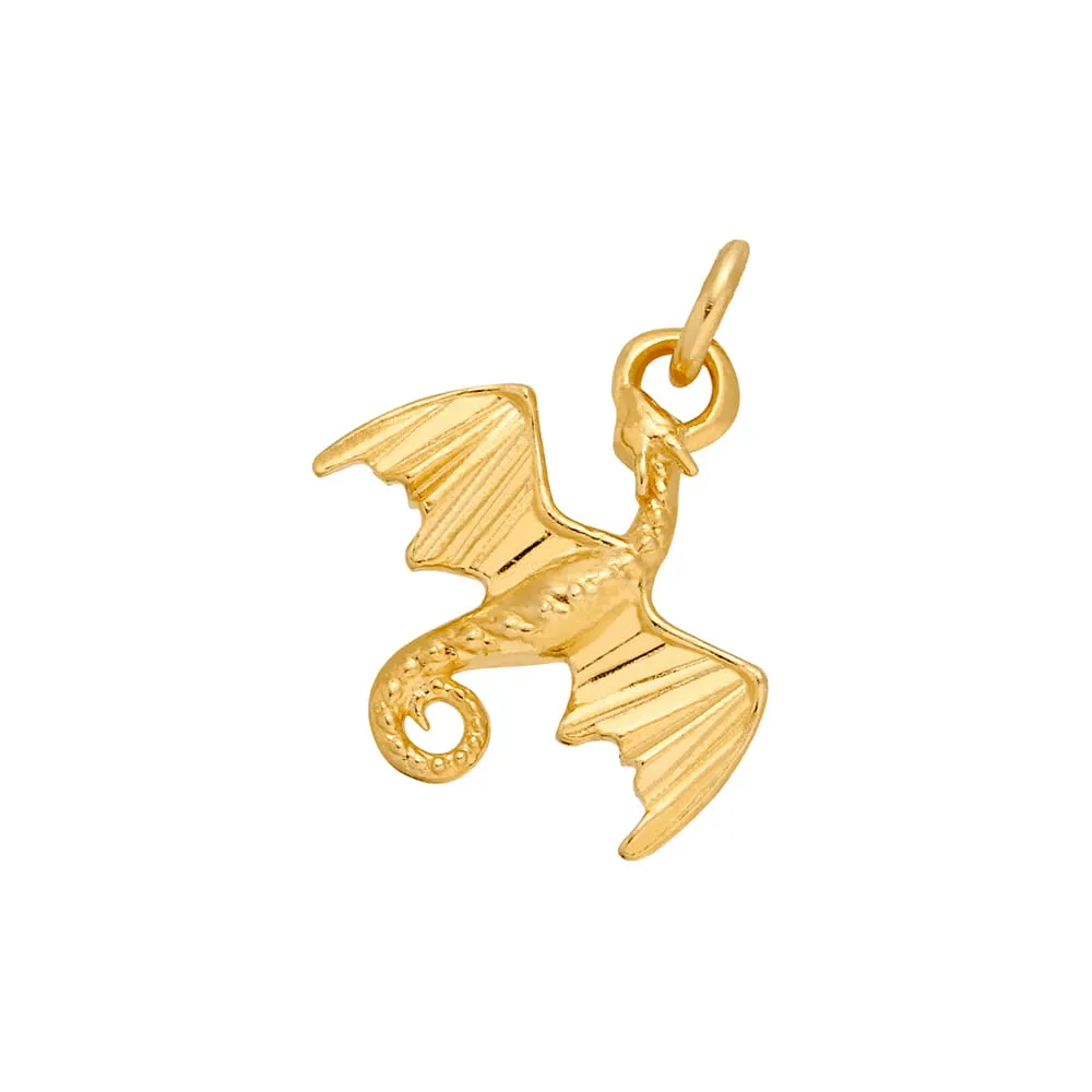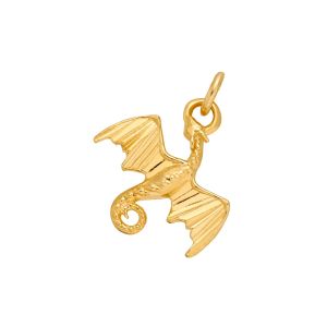 Zawieszka ze srebra próby 925 pozłacanego 24-karatowym złotem w kształcie smoka. Posiada dołączone kółeczko do zawieszenia na łańcuszku. Wielkość zawieszki: 15 mm Wewnętrzna średnica kółeczka: 3 mm Przedmiotem sprzedaży jest sama zawieszka (bez łańcuszka). |