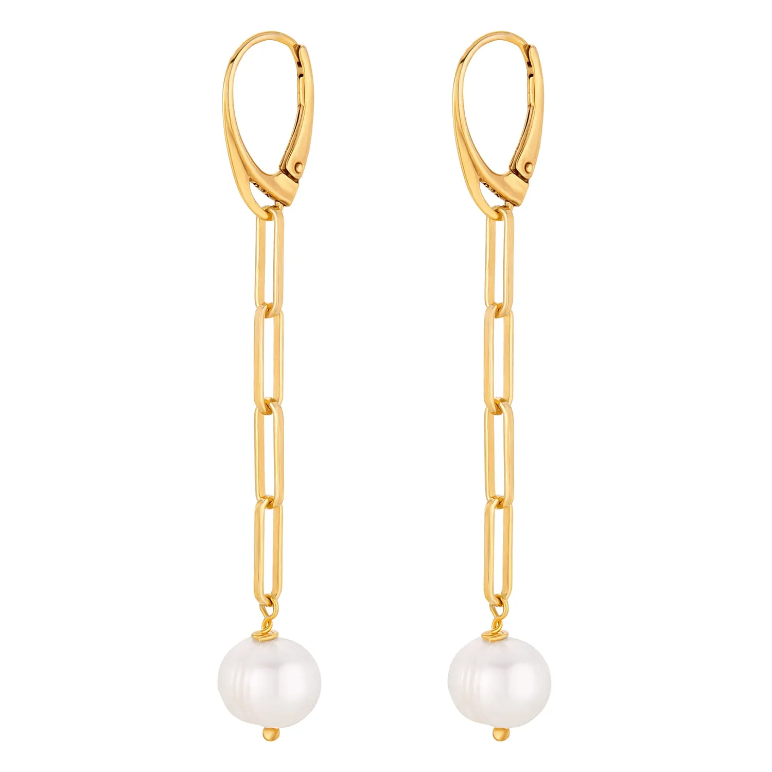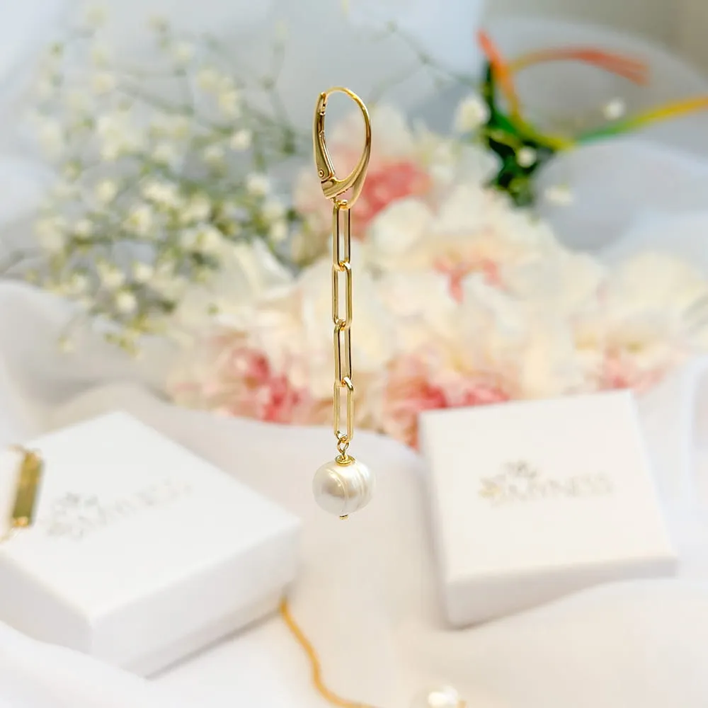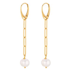 Złote, długie, wiszące kolczyki, wykonane z łańcucha z dużymi ogniwkami i perły. Model, który w ostatnim czasie stał się modowym hitem. Kolczyki zostały w całości wykonane ze srebra próby 925 pozłacanego 24-karatowym złotem. Kamień naturalny: perła naturalna hodowlana, nieregularna 8 mm Długość kolczyków: 6,7 cm Bigle: angielskie Wielkość ogniwek: 3,1 x 10,7 mm Metal szlachetny: srebro próby 925 (pozłacane) |